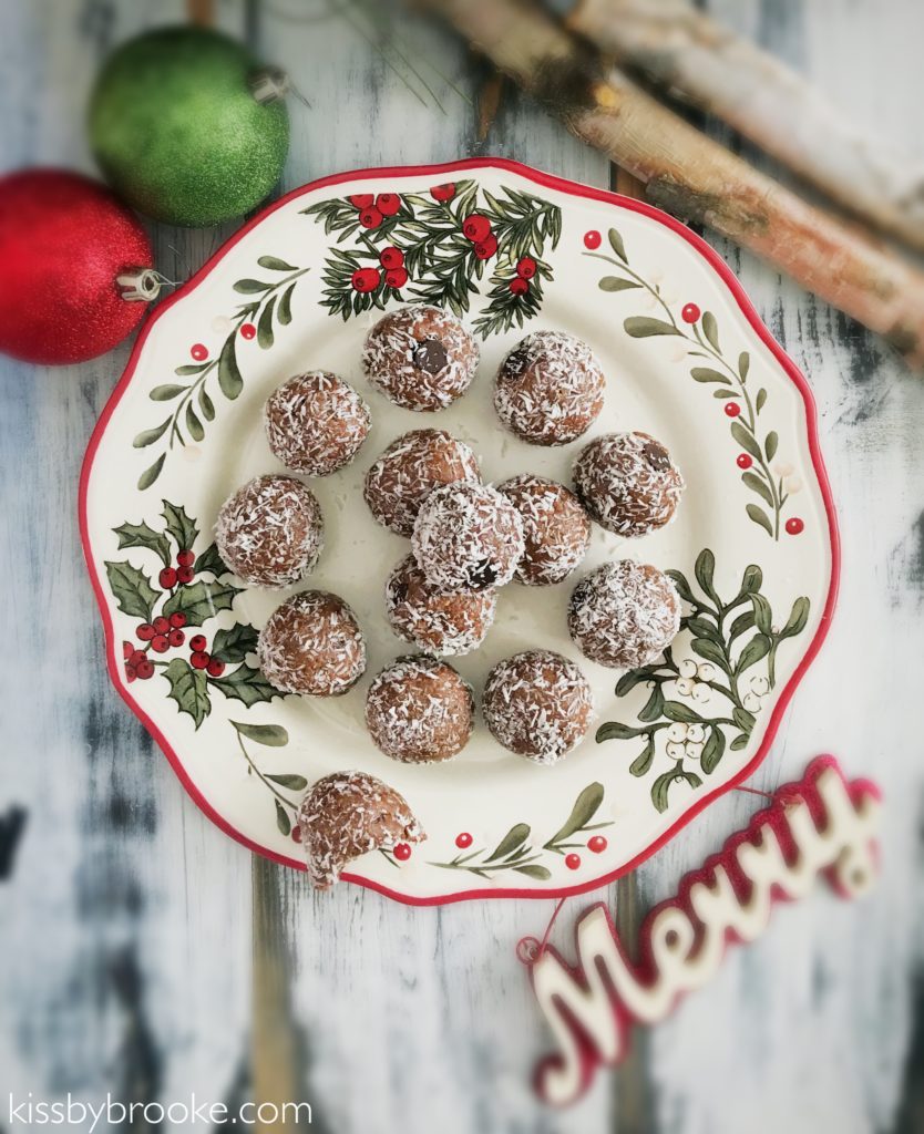 Recipe by Kiss by Brooke at https://www.kissbybrooke.com/2018/12/17/peppermint-and-chocolate-coconut-protein-balls/